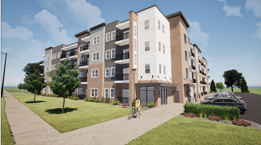3695 S State is a proposed rezoning from Office to Planned Unit Development in Ward 4. The four story project includes 43 one bedroom and 23 two bedroom affordable housing units at 60% AMI (66 total units) on a currently vacant 1.43 acre site.