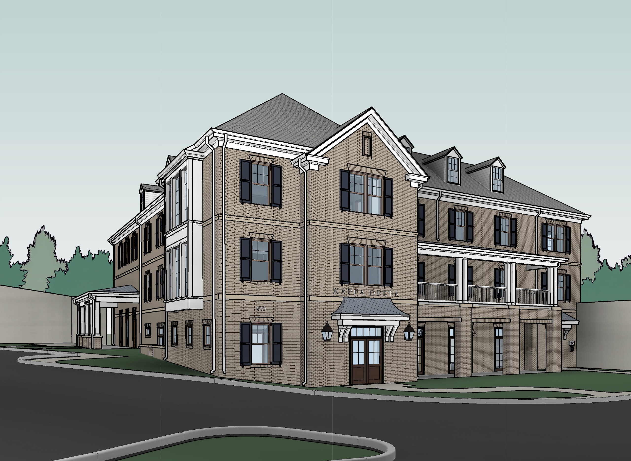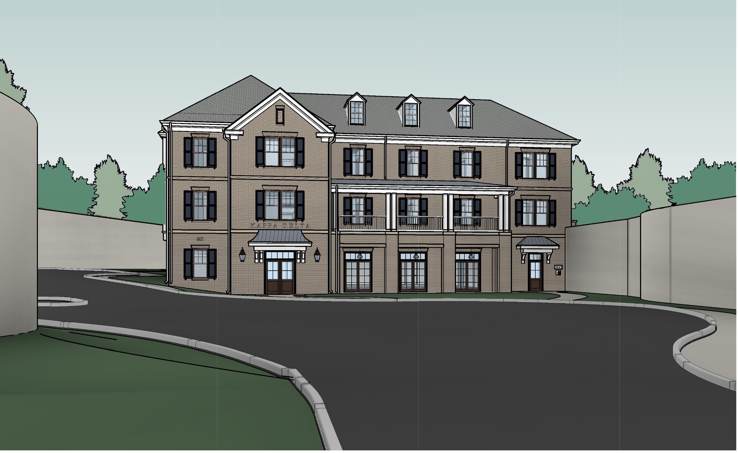 three-story, approximately 24,000 square foot sorority house with 23 bedrooms and 47 beds. The proposal includes a surface parking lot with 22 spaces.